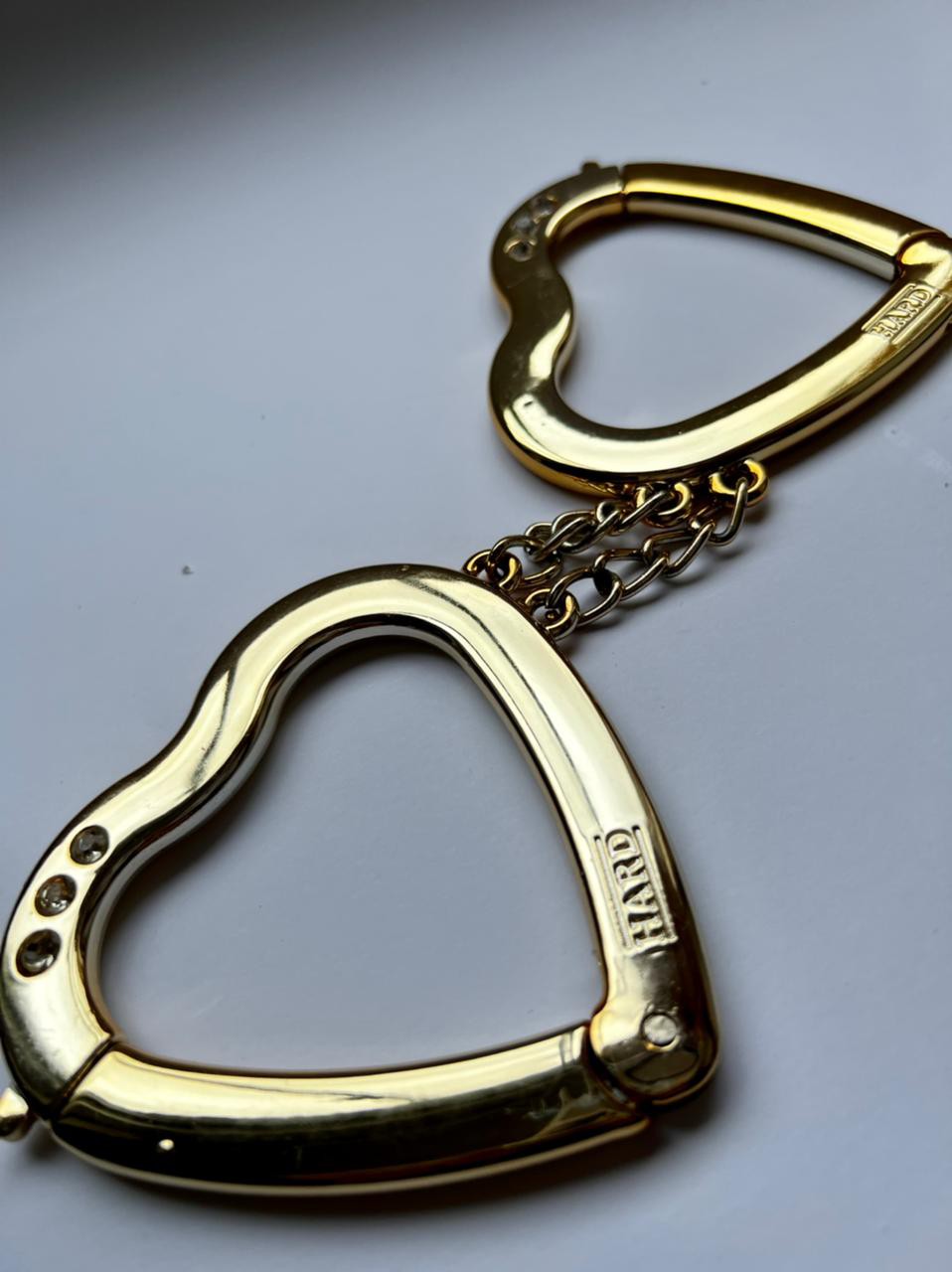 Algemas de metal em formato de coração. Uma peça delicada e com muito requinte para você realizar seu fetiche com romantismo e sensualidade. Possui mecanismo de Destravamento para sua segurança.