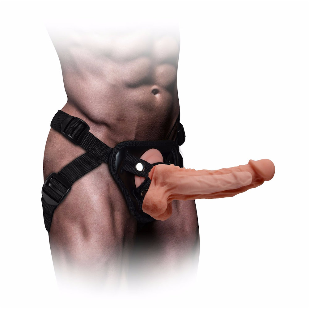 Cinta peniana ajustável reforçada com pênis oco, macio, permite mais conforto durante o uso. Possui escroto e glande saliente.Produto: 19,5x4x4 cm Diâmetro interno: 2,5 cm Penetrável interno: 16 cm Peso: 349 g. Material: TPE