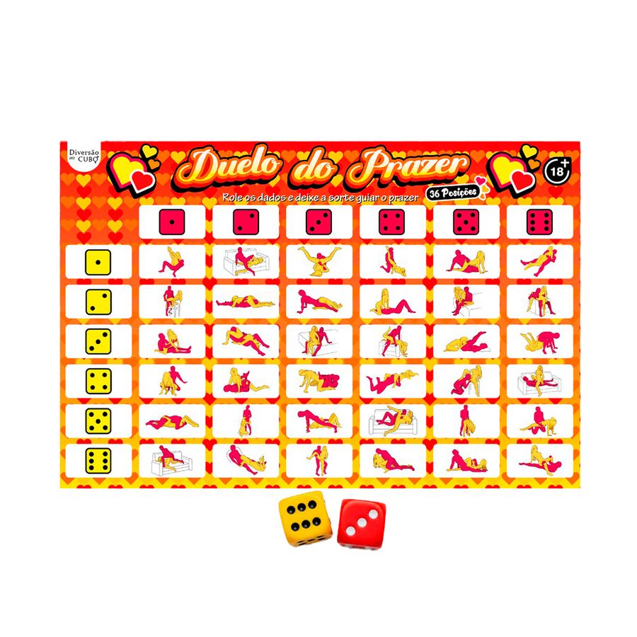 Prepare o ambiente de forma instigante (com velas aromáticas, uma playlist bem sexy e acessórios para incrementar o momento). Disponha o tabuleiro em uma superfície lisa. Jogue os dados e siga a posição indicada de acordo com o valor do dado vermelho + o valor do dado amarelo. E então, aproveite!
