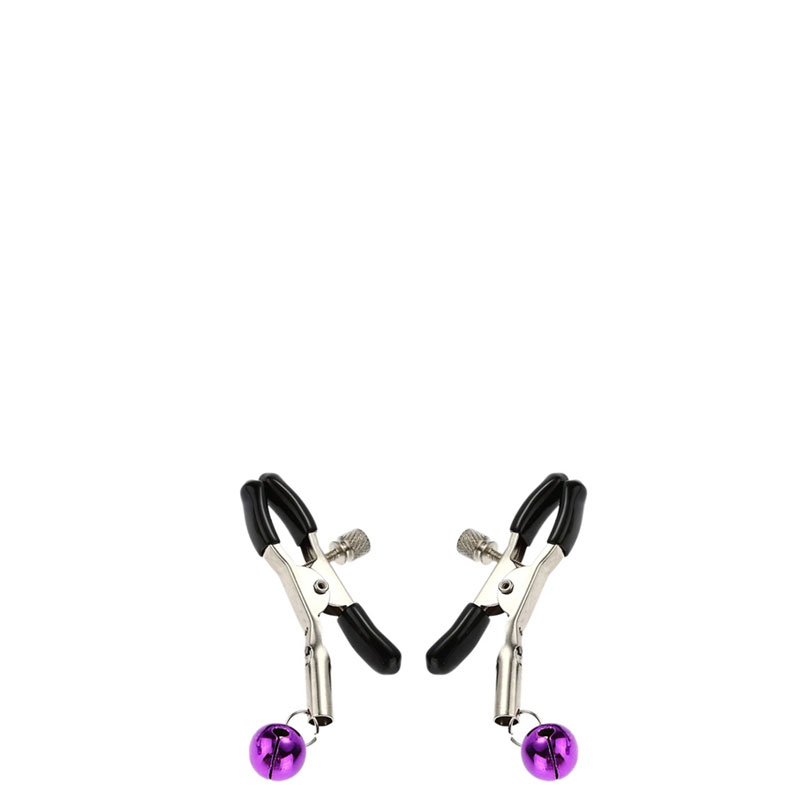 Grampos para mamilos com guizo com presilhas ajustáveis . Material: Metal