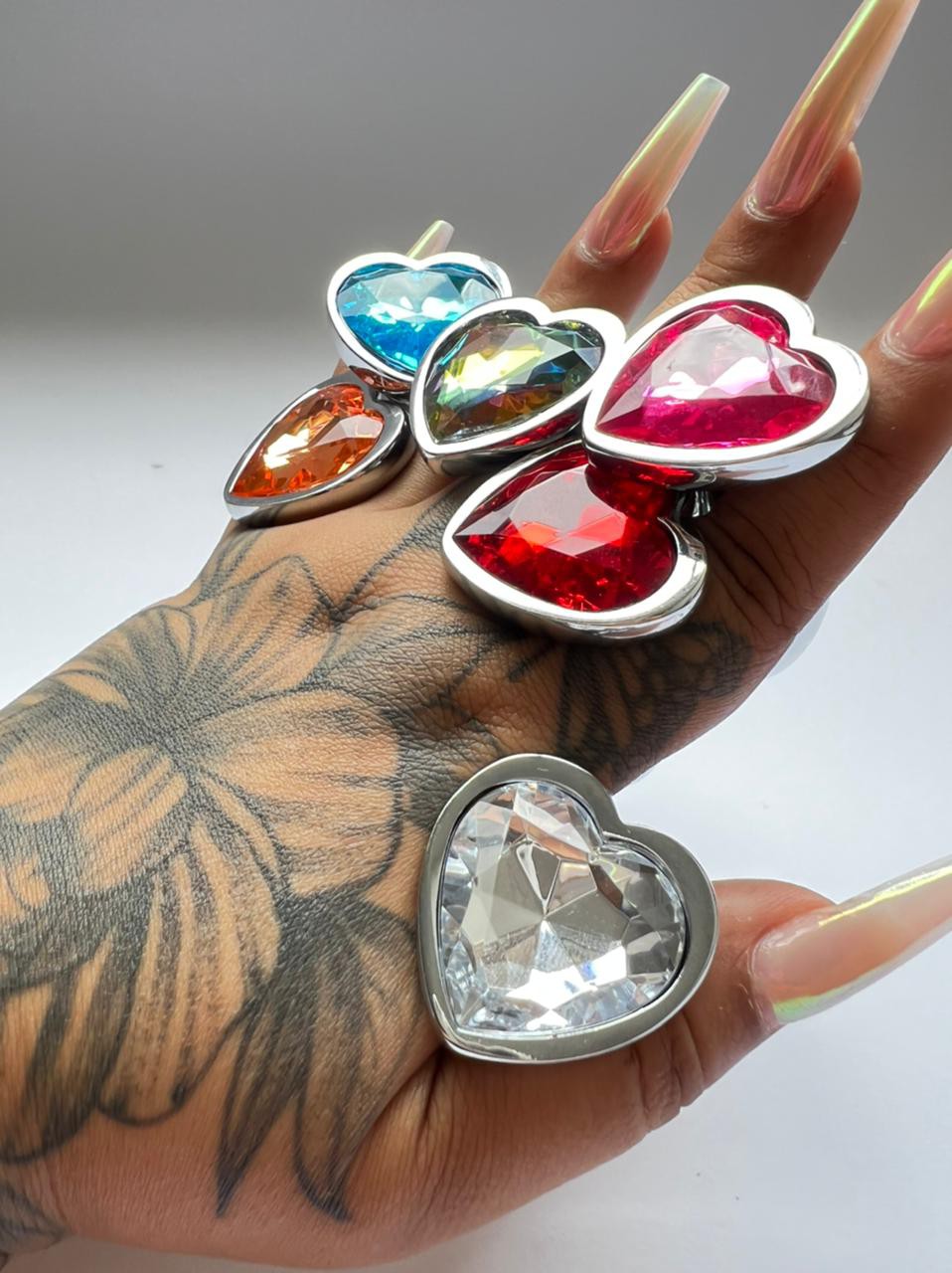 Plug anal de luxo em aço inoxidável possui forma cônica e um detalhe extremamente lindo de pedra lapidada em formato de coração na sua base.