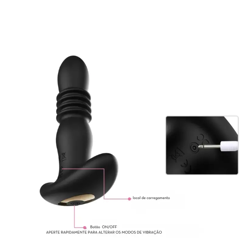 Plug anal de silicone com vibro e movimentos de vai e vem.